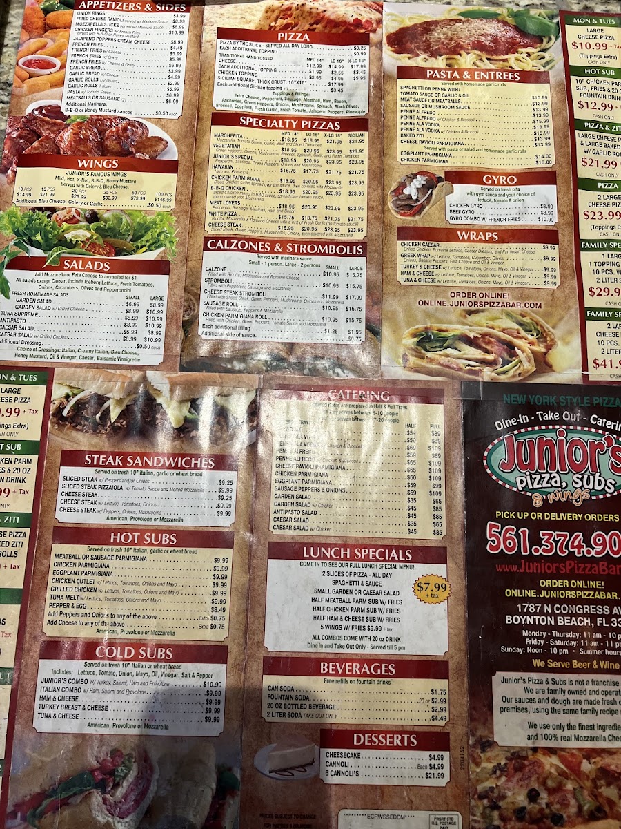Welcome to Juniors Pizza, Subs & Wings, a beloved local eatery located at 1787 N Congress Ave, Boynton Beach, FL. Here, every meal feels like a family gathering, thanks to the warm, welcoming staff who treat you like one of their own.